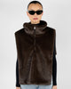 The Faux Fur Mockneck Vest pairs well with the Vegan Leather Trim Trench Coat.