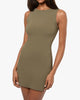 This muscle tank mini is a fitted crewneck dress made of ribbed cotton, with light side-ruching at the waist.