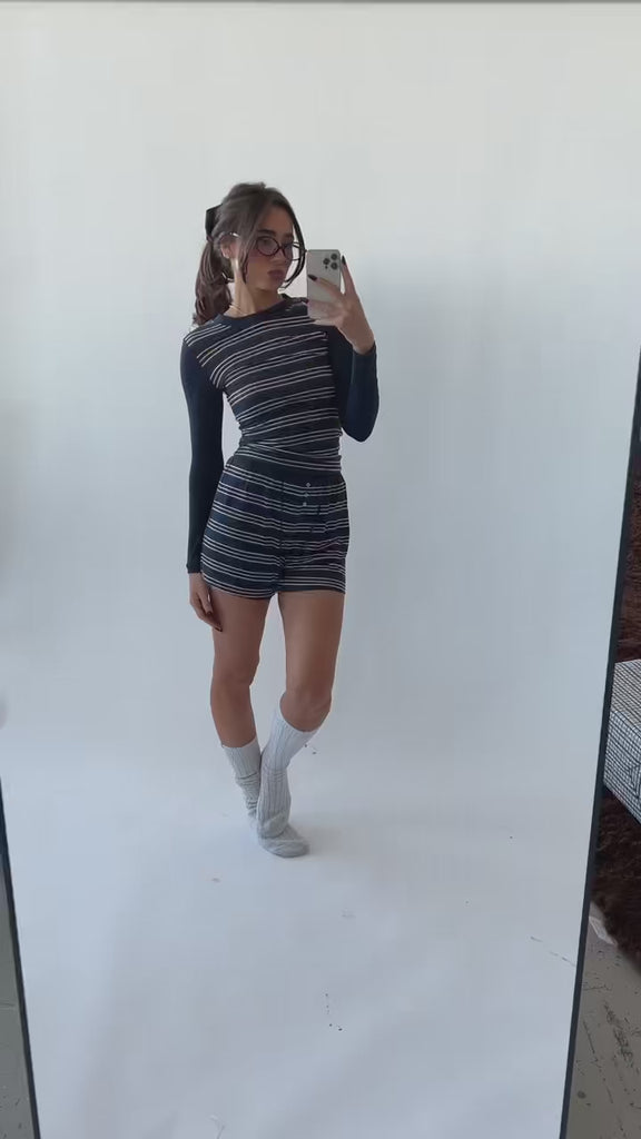The Boxer Short is styled with the Long Sleeve Crewneck Top.