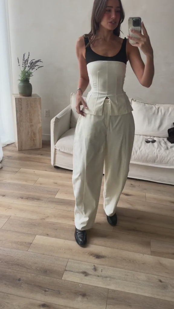 The Balloon Trouser pairs well with the Corset and the Twisted Off The Shoulder Top.