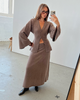 The Cinched Waist Cardigan is styled with the Sweater Skirt.