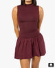 This sleeveless mock-neck dress has a smooth jersey bodice, featuring a U-shaped drop waist, that’s joined by a crisp poplin miniskirt.